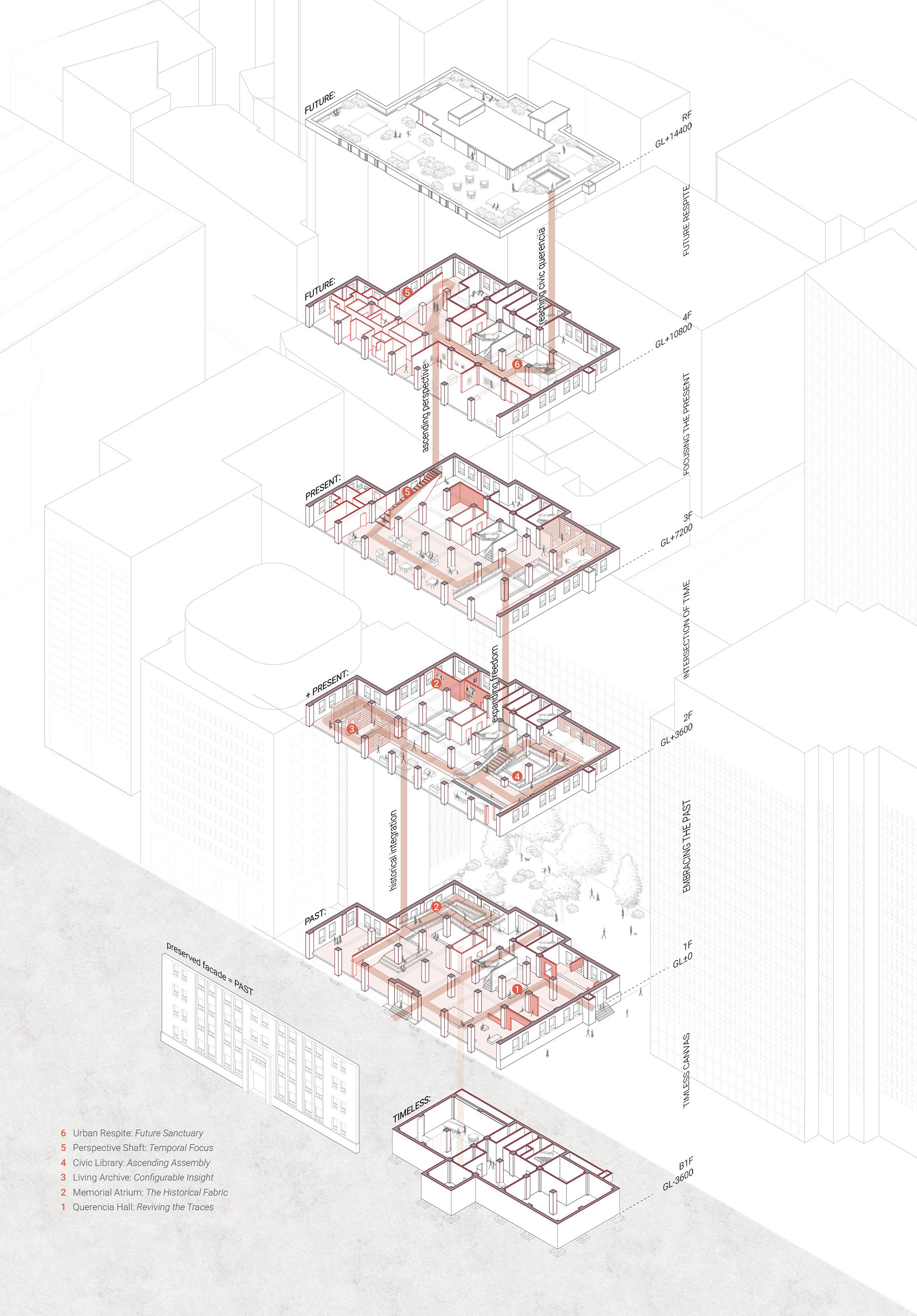 Querencia as a necessary pause, a spatial mediator is designed to reclaim the silence lost to the pluralistic modern society. By sculpting voids within the dense urban fabric, the project seeks to restore a sense of belonging, bridging historical continuity with the urgent need for a contemporary sanctuary.